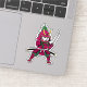 Unleash the dragon within! This stylized flat vector illustration features a vibrant pink dragon fruit character in a dynamic samurai dueling stance. Its natural scales are seamlessly integrated into ornate samurai armor, creating a unique and powerful warrior look. A high-contrast minimalist masterpiece for fans of exotic fruit, martial arts, and bold Japanese pop culture.