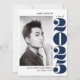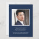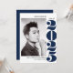 Elegant and modern graduation announcement cards design with graduate's best vertical (or portrait) photo and graduation year in oversized bold NAVY BLUE lettering, with three custom line for name, college or school and year.