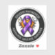 Sticker to help spread awareness for Epilepsy featuring a purple awareness ribbon done in a pop art style. The text, "advocate, educate and empower" is on it.