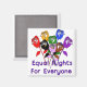 A bouquet of roses in red, yellow, green, lavender, pink, red, black and brown requests "Equal rights for everyone." A better world is built by equal citizens.