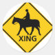 Equestrian Crossing Highway Sign Classic Round Sticker
