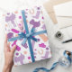 Celebrate equestrians and anyone who loves horses and horseback riding in style with this patterned wrapping paper. The gift wrap features illustrations of horseback riding gear in pretty shades of purple, lavender, magenta pink and peach with matching floral accents.
