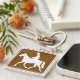Keep your keys secure and show off your passion for horses with this durable keychain featuring the classic equestrian symbol. The small keychain displays the clean brown and white silhouette of a horse and rider, perfect for adding flair to house keys, car keys, or tack room keys. It makes a great small gift or stocking stuffer for equestrians and trail enthusiasts. Keywords: equestrian keychain, horse rider symbol accessory, trail marker key fob, rustic horse lover gift, western style key tag, animal silhouette keyring.