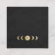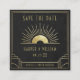 A luxurious 2.5×2.5 Save the Date card featuring a radiant gold sunburst, geometric Art Deco detailing, and personalized names, date, and location. Perfect for adding a bold celestial touch to your wedding suite or pairing with envelopes, favors, or welcome gifts. Please note: Not metallic or foil.