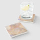The coasters are gorgeous, a quality feel and heavy weight. They look like a precious archeological find. A rustic stone juxtaposed with a modern floral black and white print. I like the way the print goes slightly imperfect on the cut stone edges giving them a kind-of natural beauty.
