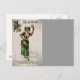 Vintage greeting with maiden holding up shamrocks in her hand. Greeting includes a Saint Patrick's Day poem.