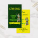 A custom business card-sized party drink ticket with Celtic and Old English letters front and back, and vintage art of an Irish lad toasting with a silver chalace. Customize It to add more text or images, change fonts and more, even save your design for later.