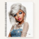 An elegant 8.5×11 hardcover notebook featuring a full‑frame editorial portrait of Eris Monei. The clean white background and tall canvas give the artwork a polished, modern look, perfect for beauty lovers, creators, and anyone who enjoys a refined, feminine aesthetic. A small customisable name sits in the bottom‑right corner, adding a personal touch without distracting from the portrait.
