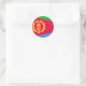 The Eritrea flag is a gold emblem in a red triangle, flanked on the top and bottom by green and blue triangles. The used colours in the flag are blue, green, red, yellow. The proportion of the Eritrea flag is 1:2. The Flag of Eritrea was adopted in 1993. The first use of the current flag design was in 1993. The last change to the current Eritrea flag design was in 1995.