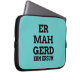 Dorky and fun typography text design Laptop Sleeve featuring a word from the popular meme of Ermahgerd. Ermahgerd is a very obnoxious and lisped way to say "Oh my God!" Customise with your own text and background colour. Use an ermahgerd translator such as this one [http://ermahgerd.jmillerdesign.com/#!/translate] to make your personalised text even more silly!