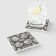 The coasters are gorgeous, a quality feel and heavy weight. They look like a precious archeological find. A rustic stone juxtaposed with a modern floral black and white print. I like the way the print goes slightly imperfect on the cut stone edges giving them a kind-of natural beauty.