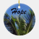 Tropical plants against a blue sky with message: "Esperanza" on one side and "Hope" on the other. Esperanza is Spanish for "Hope."