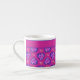 Espresso Coffee Mug, Hearts, Flowers, Magenta Cup