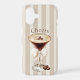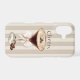 Let the good times roll with this feminine 2 tone beige stripes pattern with an espresso martini cocktail tied with a feminine ivory beige chiffon bow on the stem. The word "Cheers" is placed above the frothy drink and can be edited with other text if desired. For ladies who enjoy their social gatherings with friends and a good martini. Express your personality and fun with this unique phone case.