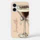 Espresso Martini Coffee Lover Personalised Brown iPhone 16 Case features a soft brown background with a delicate line drawing of an espresso martini glass adorned with a bow on the stem, adding a touch of elegance and charm. A personalised brown script name sits stylishly beside the illustration, making this case both sophisticated and uniquely yours.