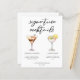 This chic signature cocktails menu features custom black typography above 2 drinks and their ingredients for your wedding bar. A cute summer Sangria and Mojito drawing add a cool flair to your bar menu. Complete with the couple's names and date for their reception.