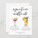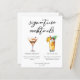 This chic signature cocktails list features simple black typography above 2 drinks and their ingredients for your wedding bar. An espresso martini and Pina Colada drawing add a cool flair to your bar menu sheet. Complete with the couple's names and date for their reception.
