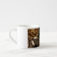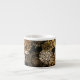 White espresso mug shown with black/brown/gold stylish print.