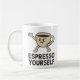 Bring your coffee break to life with "Espresso Yourself"—a playful design featuring a coffee cup character striking a dramatic pose. With a splash of humour and a jolt of personality, this design is perfect for coffee lovers who take their caffeine (and self-expression) seriously.
