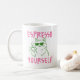 Bring a little joy to your daily coffee ritual with this playful “Espresso Yourself” mug. Featuring a charming line‑art cat in cool sunglasses, happily sipping its own tiny cup of coffee, this design blends humor, personality, and a touch of whimsy. The bright pink lettering adds a fun pop of color, making the message stand out without overwhelming the clean white ceramic. Perfect for coffee lovers, cat lovers, or anyone who appreciates a good pun, this mug makes mornings lighter and gifting easier. Whether it’s for your desk, your kitchen, or a friend who needs a smile, it’s a cheerful reminder to be yourself—boldly and caffeinated.