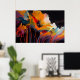 The contrast between darkness and radiant color creates a powerful atmosphere that feels both intimate and bold. The flowers are not defined by precise detail, but by movement and feeling, allowing the viewer to connect with the artwork on a deeper, more intuitive level. The layered textures and sweeping forms suggest passion, vitality, and the quiet strength found in nature’s cycles.