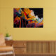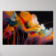 This evocative abstract artwork captures the soul of a garden through dramatic color, motion, and expressive texture. Luminous floral forms emerge from a deep, shadowed background, painted in rich hues of golden orange, warm ivory, crimson, teal, and soft violet. Fluid brushstrokes and dripping lines give the composition a sense of growth and release, as if the flowers are unfolding in a moment of intense emotional energy.