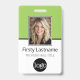 The front includes a prominent photo with the ability to change the background colour if you need different colours for security areas.