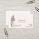 Business card with a hand painted watercolor lavender bouquet in a watering can to promote your Essential Oils business.