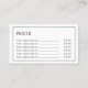 Price cards for spin exercise bike fitness coaches. The design features an icon of a person training on an exercise bike. All text is fully configurable for the entry your own details. The back of the card has space for the prices of up to six items to be entered.