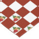 Ripe red tomatoes, leafy green basil, a large bulb of garlic and a traditional bottle of Chianti are all included in the Italian-inspired still life on this red and white chequerboard pattern tablecloth.