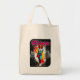 The printing came out very well, better than I had anticipated. The natural color fabric is sturdy with strong seams and comfortable handles. This tote fits easily over my shoulder. As it is filled, the bottom flattens out--very cool! I would buy this product again. This grocery tote holds a lot of groceries! The image quality was very good. The colors were a little darker than I had expected. The darkness may have been due to printing on a natural color fabric rather than on white. The cat design is attractively centered on the tote. The spirit of the design is very lively, just as it appears on the Zazzle website.