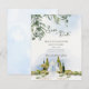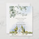 The design showcases cascading greenery framing the top and a beautifully illustrated garden pavilion below — evoking the charm of estate, vineyard, and European-inspired outdoor weddings. Soft sky tones and elegant typography create a refined, classic first impression for your guests.