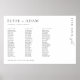 This seating chart poster features a modern minimalist design and 3 tables layout. The script text heading is an image that cannot be edited. The heading image can be resized to fit any poster size. All of the other text is fully editable. For more advanced customisation of this design, simply select the "Customise It" button above.