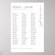 This seating chart poster features a modern minimalist design and 3 long banquet tables layout. The script text heading is an image that cannot be edited. The heading image can be resized to fit any poster size. All of the other text is fully editable. For more advanced customisation of this design, simply select the "Customise It" button above.