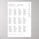 This seating chart poster features a modern minimalist design and 12 tables layout. The script text heading is an image that cannot be edited. The heading image can be resized to fit any poster size. All of the other text is fully editable. For more advanced customisation of this design, simply select the "Customise It" button above.
