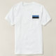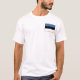 The front of this t-shirt bears a small Estonian flag with its familiar blue, black and white horizontal bands, while the back displays a relief map of Estonia. Available on t-shirts, sweatshirts, polos, long-sleeves and more.