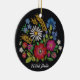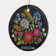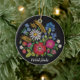 Estonian Christmas Ornament - Muhu Inspired Colourful floral design against black background. Features Merry Christmas written in the Estonian language - Häid jõule.