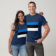 This design features the national flag of Estonia (officially the Republic of Estonia), which is a country on the eastern coast of the Baltic Sea in Northern Europe. It is bordered to the north by the Gulf of Finland across from Finland, to the west by the Baltic Sea across from Sweden, to the south by Latvia and to the east by Lake Peipus and Russia. The territory of Estonia consists of both the mainland and of 2,222 islands in the Baltic Sea. The official language of the country is Estonian. Tallinn is the capital of Estonia; other major cities in Estonia are Tartu, Narva, Pärnu, Kohtla-Järve and Viljandi.