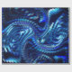 Estampa com imagem azul que se assemelha a algo parecido com uma estrela, mas foi submetida a efeitos de "onda" que fizeram as linhas do desenhos tomarem uma forma de ziguezague.