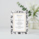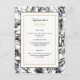 Part of a decadent wedding stationary set, fit for a royal! This wedding information card has etched botanical floral's and decorative scrolls. The golden colour border and scroll lifts it all and stands out against the black and white.
