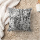 This throw pillow features an eclectic abstract that includes circles of zebra stripes. The colours range from grey (or grey) to charcoal to black.