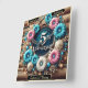 Celebrate five cherished years of love with an elegant circular floral arrangement. Blue and pink flowers, framed by lush green leaves, form a harmonious display that symbolises unity and enduring affection. The rustic wood background enhances its warmth, grounding the design in natural beauty and timeless charm.
