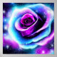 Blue and purple rose with space and stars in the background.