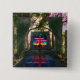 An old stone church stands in ruins amid the grass and flowers of a sunny hilltop, but the stained glass window still colours the morning light with the design of a red cross against a bright sunrise. The old stone arches are broken, but the boughs of blossoming trees frame the window.