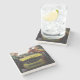 The coasters are gorgeous, a quality feel and heavy weight. They look like a precious archeological find. A rustic stone juxtaposed with a modern floral black and white print. I like the way the print goes slightly imperfect on the cut stone edges giving them a kind-of natural beauty.