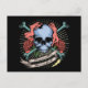 Rock and roll skull and crossbones graphic with devil girls, roses and wavy banners with, "Eternally Grateful" in script lettering, on a sunburst background. T-shirts, cards, gifts.