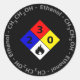 Colour coded MSDS sticker for ethanol with molecular formula. Grey lettering on black sticker.