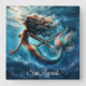 Ethereal aquatic mermaid beauty in deep blue square wall clock