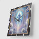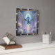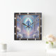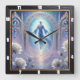 This square wall clock displays a mystical figure in flowing blue robes ascending through an ornate, jewelled archway, surrounded by a radiant glow and delicate bubbles. Lush white roses frame the scene, set against a soft, ethereal sky, evoking a sense of spiritual transcendence and serene beauty.