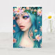Thinking of you friendship card. Pretty girl with flowers in her blue hair. Beautiful blue eyes with pale skin fairy tale fantasy art.